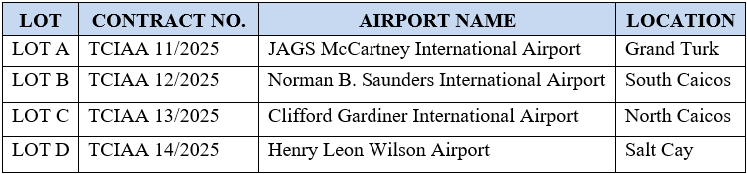 The Chief Executive Officer of the Turks and Caicos Islands Airports Authority invites open tenders for the following Contracts:
