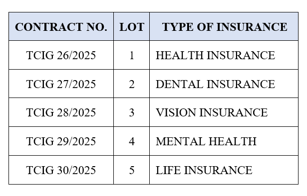 The Turks and Caicos Islands Government invites open tenders for Health, Life and Supplemental Insurance, Tender Reference Number TR 25/16, which comprises the following Contracts: