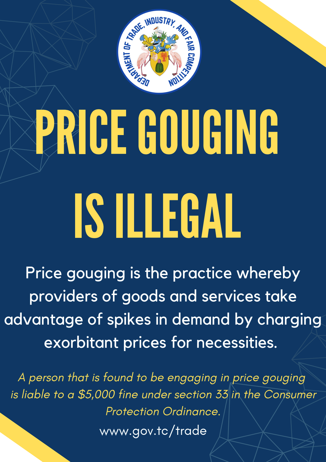 The Department of Trade, Industry and Fair Competition (DTIFC) reminds all businesses and vendors across the Turks and Caicos Islands that price gouging during times of national emergency, including hurricanes, is strictly prohibited under the Consumer Protection Act 2016.