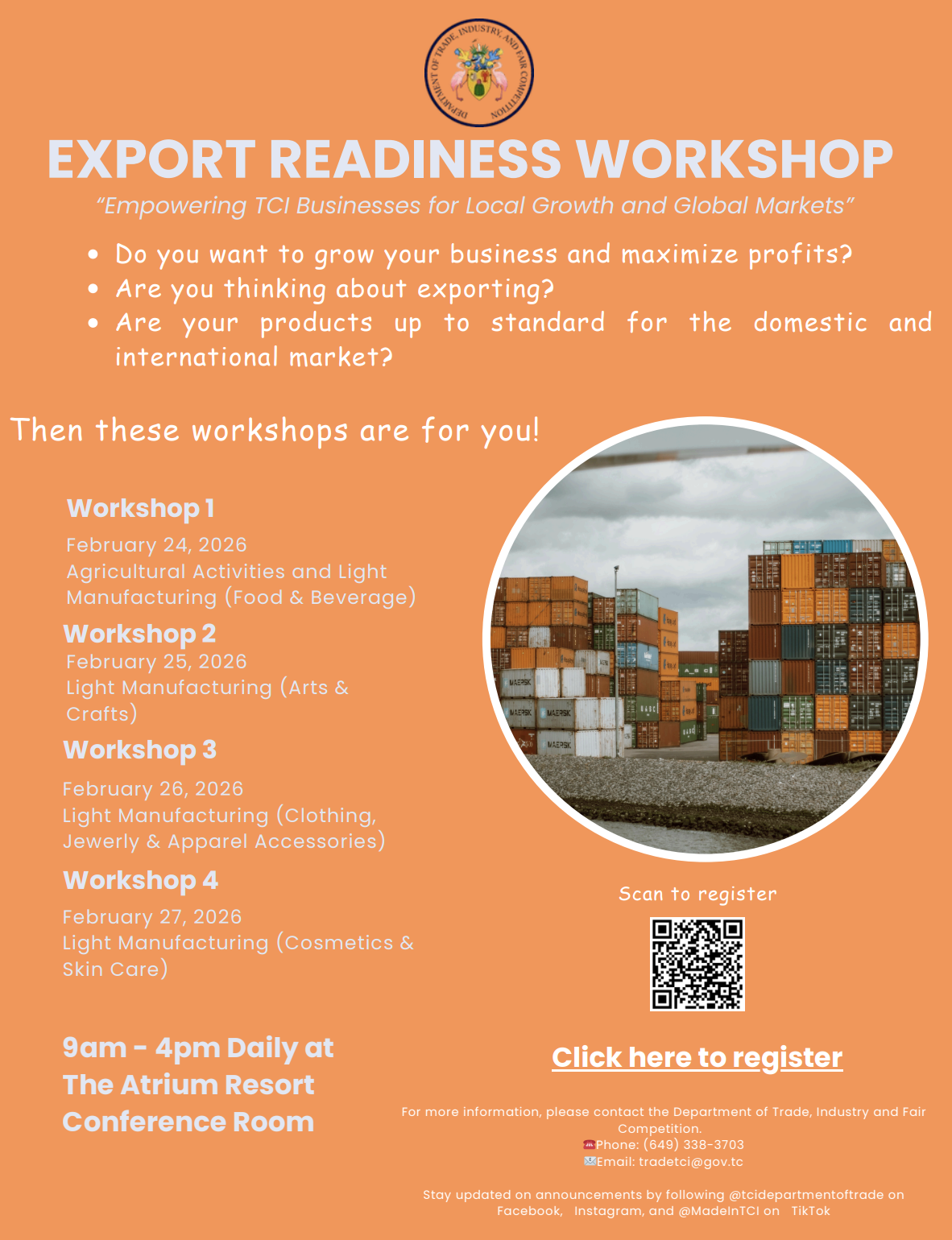 THE DEPARTMENT OF TRADE, INDUSTRY & FAIR COMPETITION TO HOST EXPORT READINESS WORKSHOP THEME: “EMPOWERING TCI BUSINESSES FOR LOCAL GROWTH AND GLOBAL MARKETS.”
